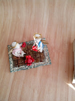 Siempre vamos buscando algo que nos pueda servir para nuestras miniaturas, tuvimos suerte yo con unos falsos libros y otras cositas, un perro, un gato, figuras de plomo y como no.... una muñeca de porcelana que me pareció preciosa. También pensando en el proyecto creo que incluiré una cruz que compré este año en la feria de Madrid a David , el año anterior ya me cautivó, así que sin saber para qué.... la compré y mira por donde creo que hará genial en una biblioteca.