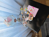 En primer plano otro regalo, un ángel tilda de Carmen Casanova, las flores,ángeles y pasteles hechos por mi, los libros de Caterina .La escultura de bronce deNeil Carte mi última compra en la feria de Madrid.
