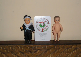 Este muñeco ya es de fabricación actual, mide 6 cm, está desnudo, la cuna está realizada con el tutorial de Cantimpalo http://cantimpalo1.blogspot.com/