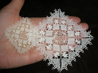 El más pequeño mide 4 cm por 4 cm, está realizado con algodón egipcio- kantklosgaren, nº 140.